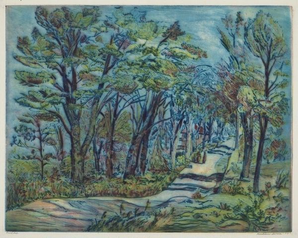 David Burliuk, a key figure in the Russian avant-garde, painted "Landscape with Blue Mountain" using watercolor and ink, at an unknown date. Burliuk’s life took him from Ukraine to the United States, mirroring the displacement felt by many artists of his generation amidst war and revolution. In this landscape, the road winding between the trees might symbolize not just a physical path, but also the artist's personal journey through changing homelands and artistic styles. The colors and textures evoke a dreamlike state, inviting us to reflect on the intersection between nature and personal identity, and the emotional resonance of familiar landscapes. Burliuk once stated, “Color is everything.” It’s clear to see how he uses color here to convey emotion. The blue mountain itself, a focal point in the distance, represents longing and the search for stability. The painting is ultimately an intimate exploration of how memory and place shape our sense of self.