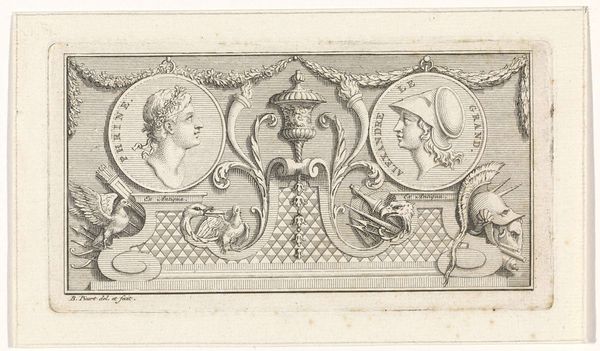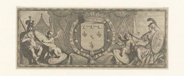 Bernard Picart created this print of a medal portraying Charlemagne. The print was made in 1731, a time when Europe was captivated by its past, seeking to define national identities through historical figures. This image presents two views of the same medal, each encased in a circular frame with Latin inscriptions. On the left, Charlemagne sits enthroned, flanked by figures that give the scene a sense of divine endorsement. He is presented as a figure of divine authority, sitting above a coat of arms which shows the symbols of royal power. The other side shows him on horseback, armed for battle. This work offers a window into the construction of historical memory and national identity. It invites us to reflect on how figures like Charlemagne are used to legitimize power structures and shape cultural narratives. The medal is not just a portrait; it’s a carefully crafted statement about leadership, legacy, and the enduring power of symbols.