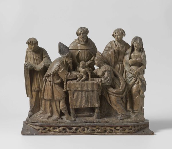 This sculpture depicts Mary with child sitting on a throne, surrounded by angels. The Virgin Mary, seated regally, presents her son, surrounded by angels, some playing musical instruments, all beneath a draped canopy held aloft. The motif of the Madonna enthroned traces back to ancient Roman depictions of emperors and goddesses, symbols of power and divinity. Here, Mary is transformed into a queen of heaven. This echoes in Byzantine art, where Mary is often depicted as the Theotokos, the God-bearer, seated on a throne. Note the angels that hold a piece of draping; this act, seen also in classical depictions of emperors, connects to pre-Christian times when it signified divine protection and sacred space. Observe the gestures and postures of reverence and adoration, deeply ingrained in our collective memory and subconscious. These enduring images continue to resonate, evolving through time, reflecting our deepest fears, hopes, and desires.