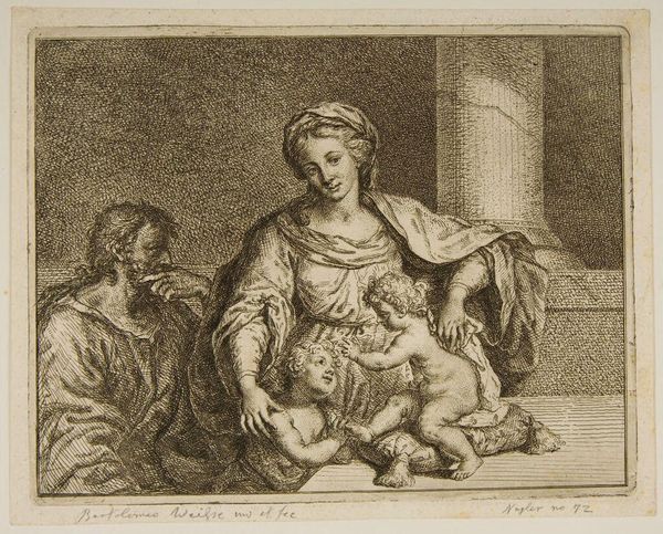 This engraving by Lucas Vorsterman I presents Mary adoring the Christ Child, a tender scene filled with potent symbols. The sleeping child radiates light, a halo before his time, marking him as divine, while Mary’s folded hands and downcast gaze evoke humility and reverence. This image echoes the iconography of the Nativity, yet it also calls to mind the Pietà. Mary’s adoration here, so full of foreshadowing, reminds us of the cyclical nature of religious art: birth, death, and rebirth intertwined. The halo, a luminous circle around the head, isn't unique to Christianity. From ancient sun gods to enlightened Buddhas, it signifies divine status. Its endurance reveals our collective yearning for the sacred. The image evokes a deep emotional response, tapping into primal feelings of maternal love, divinity, and mortality. It is a testament to the enduring power of symbols to transcend time, each era reinterpreting and reshaping them to reflect its own spiritual and psychological landscape.