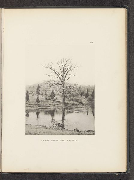 Editor: This gelatin-silver print, called "Nettle Tree, Lowell," dates from before 1890, and is attributed to Henry Brooks. It has an aura of tranquility, like a scene captured mid-dream. The way the water reflects the light… What symbols or deeper meanings do you see at play here? Curator: It is fascinating how photography at this time—and Brooks’s eye in particular—elevates the seemingly mundane. Consider the Nettle tree itself. Often seen as an unwelcome weed, its prominent positioning transforms it into a symbol. What associations does "nettle" evoke for you? Editor: Stinging… Irritation, maybe. Something to avoid? Curator: Precisely! So, why immortalize it? Perhaps it’s about perspective. The very thing we disregard or find unpleasant might possess a quiet beauty or even power. Look at its stature – it dominates the scene, doesn’t it? Think about Lowell’s industrial landscape, and how nature, even something as simple as a ‘weed,’ endures amidst it. Editor: I see your point! It’s like a resilient spirit thriving despite harsh conditions. The quiet beauty feels more poignant knowing that. Curator: Exactly. And observe the lone figure standing near the tree. What feelings does it give you? Editor: Isolation, maybe even a connection to the nature, almost a peaceful recognition of each other. Curator: Brooks may subtly invite us to rethink our relationships to nature, even its overlooked corners, allowing for connection and quiet reflection, perhaps even showing the perseverance of life in unexpected places. Editor: That gives me a lot to think about. I hadn't considered the loaded symbolism of something so simple as a weed. It really changes my perception of the whole piece. Curator: Indeed. It reminds us that cultural memory and personal meaning can be layered within the simplest of images, always present to reveal new understanding.