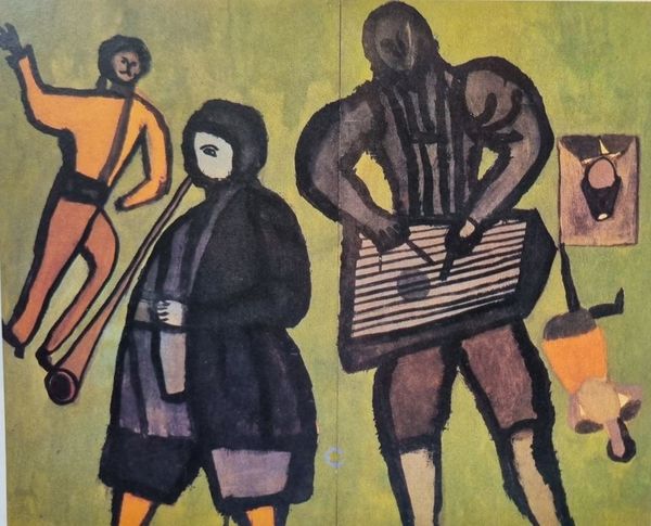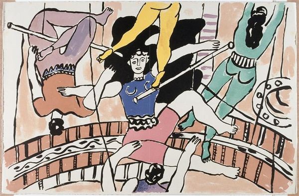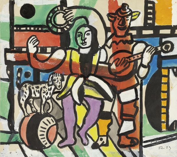Fernand Léger made this study for ‘La Grande Parade’ with gouache, ink, and graphite, and you can really feel the joy in its creation. The color palette is upbeat and playful, lots of yellow, purple, and green, like a primary school party or an invitation to the circus! What really grabs me is the materiality of the piece. The gouache is laid down in these confident, almost slapdash gestures, giving the whole thing a sense of immediacy, like Léger was just having fun. The way the ink outlines define the figures but also bleed into the gouache, it's like the forms are still in process, not quite settled. It's especially noticeable around the clown's ruff on the right. It makes me think about how Léger saw the world as a kind of construction site, always in motion. He was clearly looking at Cezanne and the early cubists, but I also see echoes of Matisse’s paper cut-outs in that color palette and confident line. But Léger’s got his own thing, a kind of mechanical whimsy that’s totally unique. It's a reminder that art is a conversation, not a monologue.