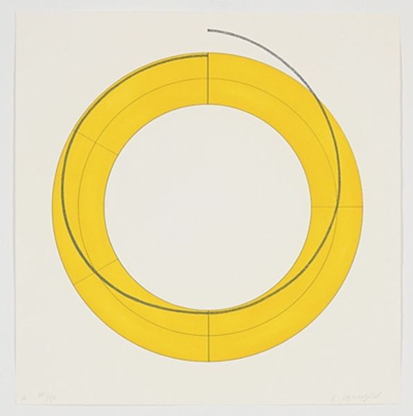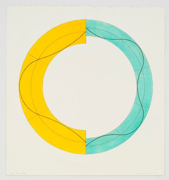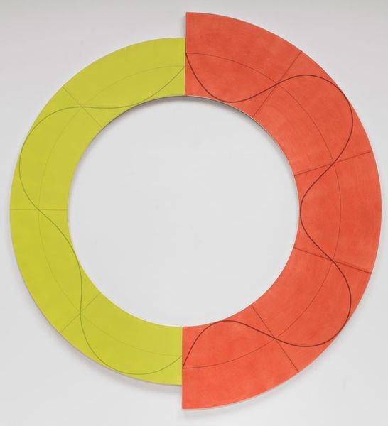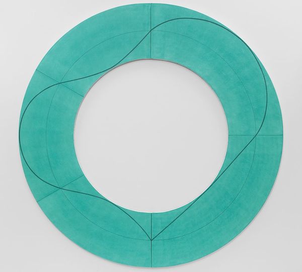 Robert Mangold created this "Ring Image M" from acrylic and graphite on canvas. The canvas support plays a crucial role. It's stretched taut, providing a smooth, consistent surface for the application of paint and graphite. The acrylic paint is applied in flat, even layers, creating a matte surface that emphasizes the shape of the ring. The graphite lines, drawn precisely on the painted surface, add a layer of complexity. Look closely and you can see the subtle variations in tone and texture created by the graphite, which gives the work a tactile quality. The use of these materials is tied to larger shifts in artistic production, where industrial materials are adopted to create a very precise aesthetic. The labor is evident in the careful planning and execution of the work. Ultimately, "Ring Image M" encourages us to consider the relationship between material, process, and form, and challenges traditional notions of what constitutes a painting.