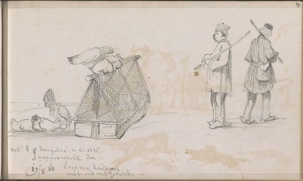 Charles Rochussen made this print of two women. The medium is etching, a printmaking technique that involves using acid to corrode lines into a metal plate, which is then inked and pressed onto paper. The labor-intensive process of etching mirrors the social context of the scene, depicting the lives of working-class women. The texture and weight of their garments, rendered through Rochussen’s meticulous lines, speak to the material realities of their daily lives. One woman carries a basket on her head, a clear sign of her role as a worker, perhaps carrying goods to market. Consider the skilled traditions that Rochussen engaged with, blending the techniques of fine art with the depiction of everyday labor. By focusing on materials, making, and context, we gain a deeper understanding of the artwork and its commentary on labor and class.
