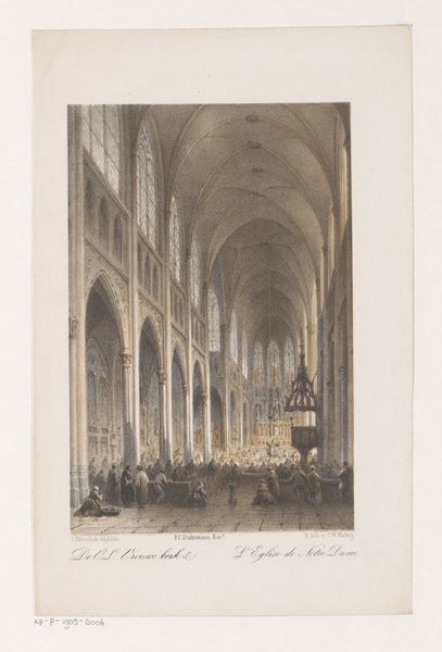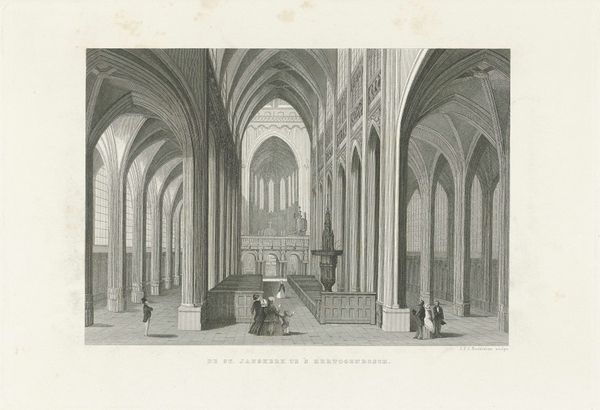Johann Gabriel Friedrich Poppel created this print of the Interior of St. Bavo Church in Haarlem sometime in the 19th century. During this period, the Netherlands was undergoing significant transformations, grappling with its colonial past and redefining its national identity. Poppel's print captures the grandeur of St. Bavo Church. The architecture emphasizes verticality, perhaps mirroring the rigid social hierarchies of the time, and the church stands as a silent witness to centuries of shifting power dynamics, from religious conflicts to the rise of merchant capitalism. As we observe the figures within this space, consider how their presence—or absence—contributes to the narrative of belonging and exclusion. The church itself is a symbol of spiritual authority and community, and Poppel uses the print medium to engage with questions of visibility, representation, and the enduring legacy of cultural institutions.