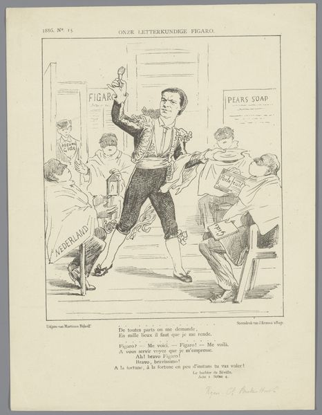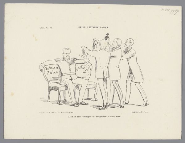 Johan Michaël Schmidt Crans made this print in 1871, using line engraving on paper. It satirizes a perceived 'marriage' or alliance within the Dutch Second Chamber, likely between a member of parliament and a baker's daughter, or perhaps representing a coalition with economic interests. Prints like this flourished in the Netherlands during a period of political and social change. The late 19th century saw the rise of new political ideologies and debates over social reforms. Caricatures in popular journals helped to shape public opinion and provided a visual commentary on the issues of the day. The artist employs recognizable imagery, such as the baker with his tools, and the parliamentarian in formal attire, to critique those involved. The print's effectiveness relies on its viewers' understanding of the political context and the social stereotypes being invoked. To fully understand this image, we can consult parliamentary records, period newspapers, and biographical information about the figures mentioned in the print's captions. The historian's role is to unearth these layers of meaning and show how art is always embedded in its specific time and place.