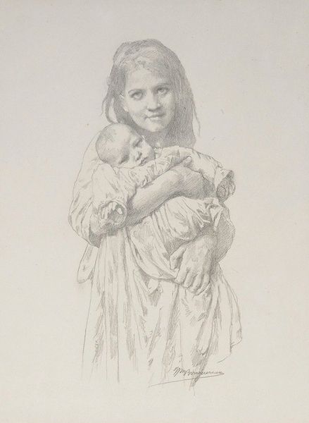 Gerald Leslie Brockhurst created this print, “The Two Mélisandes,” using etching. Brockhurst was part of a generation of British artists who came of age during and after the First World War, when traditional gender roles were being questioned and renegotiated. In this work, we see a tender depiction of motherhood, as a young woman lovingly cradles a baby wrapped in cloth. The title may allude to Maurice Maeterlinck’s symbolist play "Pelléas et Mélisande," which explores themes of innocence, fate, and forbidden love. Brockhurst made many portraits of women; he was celebrated for his technical skill and ability to capture the beauty and grace of his subjects. However, his idealized images often adhered to conventional standards of feminine beauty. Despite the traditional subject matter, the artist presents an intimate moment that is open to interpretation. The tender interaction suggests the powerful bond between mother and child, reflecting societal values placed on motherhood. However, Brockhurst leaves space for viewers to contemplate the complexities of female identity during a period of great social change.