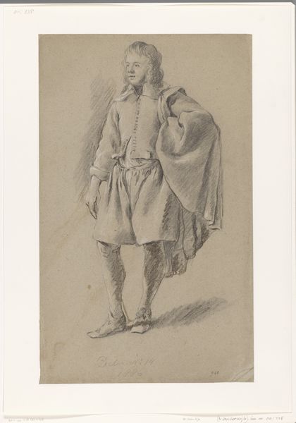 Joannes Pieter Visser Bender made this drawing of a violin player with graphite on paper, sometime in the late 18th, early 19th century. The artist's hand is evident in the soft, flowing lines that create the figure's form. The material itself – graphite – allows for a range of tones, from light grays to deep blacks, giving the drawing depth and volume. The texture of the paper also plays a role, adding a subtle graininess to the image. Interestingly, drawing was often seen as a preparatory step in the artistic process, a way to sketch out ideas before committing them to a more permanent medium like painting or sculpture. But here, the drawing stands on its own as a finished work of art. This elevates the importance of the artist's skilled hand and eye, rather than emphasizing the preciousness of the materials. It reminds us that the true value of art lies not just in the materials used, but in the skill and vision of the artist who created it.