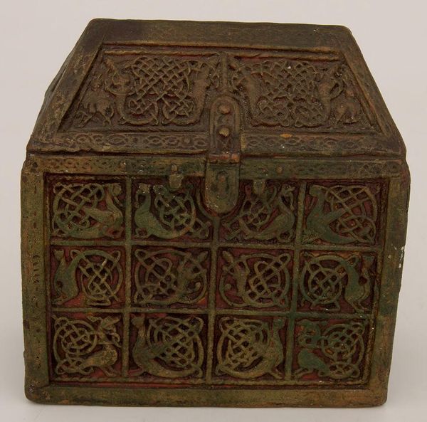 This tea caddy, ornamented with rolled paper by an anonymous artist, presents us with a fascinating array of symbols deeply rooted in cultural memory. Floral motifs abound, each petal and leaf meticulously crafted, evoking cycles of life, death, and rebirth that resonate across civilizations. The recurring circular patterns remind me of the Ouroboros, the ancient symbol of a snake eating its tail, which appears in Egyptian alchemy and Greek mythology. This symbol represents eternity and the cyclical nature of existence, and echoes through time to the circular designs seen here. The act of rolling paper into these forms mirrors the mind's capacity to transform base materials into something precious, just as alchemy seeks to transform lead into gold. Each rolled element, placed with intention, creates a texture that engages us on a subconscious level, stirring feelings of comfort and connection to a past where craft was both a skill and a spiritual practice.