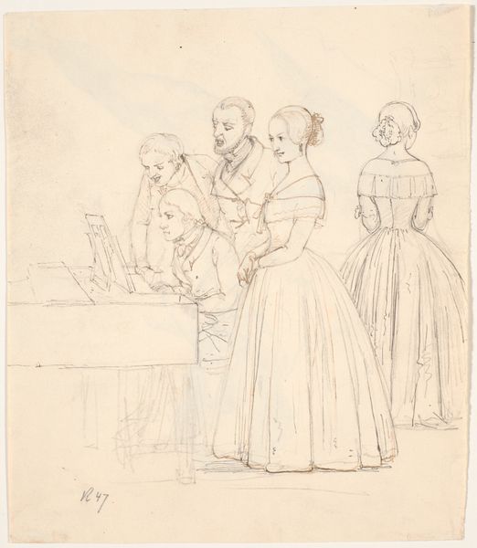 Wilhelm Marstrand sketched this draft for the Waagepetersen family portrait in pencil. It offers a glimpse into the domestic life of a prominent Danish family, likely in the mid-19th century. The composition, with its focus on familial interactions around a table, suggests themes of domesticity and social cohesion. The scene reflects bourgeois values prevalent in Denmark during this period, emphasizing the importance of family and the home as a sphere of comfort and stability. This was a time of significant social and political change in Denmark, with growing calls for democratic reforms. The family portrait, as a genre, often served to reinforce traditional social hierarchies. Further study of the Waagepetersen family and Marstrand’s other works, through archival documents and contemporary publications, would shed more light on this work’s place within the artistic and social landscape of 19th-century Denmark.