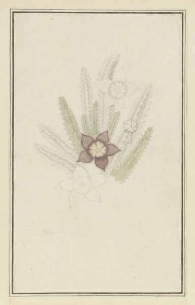 Theo Nieuwenhuis created "Takje met roze knoppen" using pen, watercolor, and graphite. The subdued pinks and greens of the sprig draw the eye, while the fainter graphite sketches around it create a sense of depth. The composition isn't symmetrical; instead, it floats, giving a glimpse into the artist's process. This sketch employs a semiotic system where the unfinished parts are just as meaningful as the defined ones. Nieuwenhuis destabilizes the traditional view of a finished artwork, suggesting that the process of creation is itself a valid form of expression. The visual elements challenge fixed meanings, engaging with new ways of thinking about space and representation. It asks us to consider how we assign value to artistic labor, and how that value shapes our understanding.
