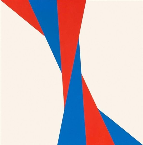 Victor Vasarely made this painting, Les Années Cinquante #1, with some kind of printmaking process, or maybe it’s acrylic. Everything is so smooth and flat, like he’s trying to trick our eyes into thinking it’s all happening on one plane. But the shapes and colours are doing something else. They’re kind of fighting for space, pushing and pulling each other in different directions. Look at that light blue shape in the middle – it’s like a shard of light cutting through the red. And the way the blue frame wraps around the other shapes, it’s like the whole thing is about to burst out of its box. It's really controlled, but it gives the impression of constant movement and change. I think of Bridget Riley when I look at this, another artist who liked to play with perception and space. It's like they're both asking: how can we make our eyes dance? How can we make a painting that never stands still?
