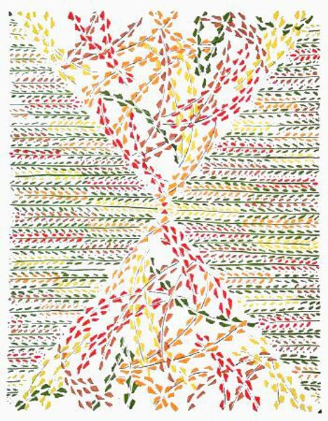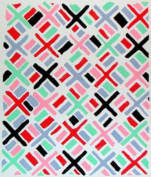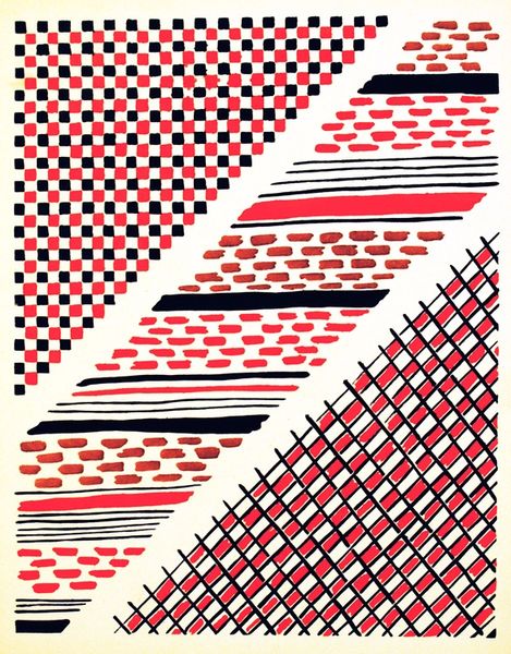 Curator: Welcome to the world of Sonia Delaunay. Here we are looking at “Composition 27”, a vibrant acrylic painting she created in 1930. Delaunay, along with her husband Robert, was a pioneer of Orphism, a movement within Cubism focused on pure abstraction and bright colors. Editor: Whoa! It hits you right away, doesn't it? It’s so playful, almost like fabric samples cut on the bias for some avant-garde quilt. What do you make of the colour choices? Curator: It is interesting that you interpret that pattern quality; textile design was incredibly significant in Delaunay’s practice and Orphist visual language as a whole. But, the dynamic arrangements and clashing primary hues feel intrinsically linked to her exploration of simultaneity—how colors interact and affect one another in time and space. Think of it as a visual symphony. Editor: A symphony conducted by a kid who just discovered finger-painting! No, but seriously, it makes me think about jazz, especially the way different rhythms and tempos can clash and blend together, create this whole vibrant sensation. There is some improvisational spirit within the organisation of geometric and free-form shapes... Curator: And what about her choice to eschew perspectival depth entirely? It positions the painting not as a window onto the world, but as a field for color, light, and dynamism that reflect on one another. In the interwar years, she wanted her artworks, including this one, to speak to and embrace modernity. The colour relationships become stand-ins for our place within shifting social contexts. Editor: Well, if you want my perspective on it—all those dots and dashes create a strange sensation for me. Like code… secrets hidden in plain sight. Maybe I need a color decoder ring or something. Seriously! I'm suddenly craving licorice and blueberries, this has definitely tickled my senses! Curator: That sensory effect makes a lot of sense to me; and indeed speaks to the essence of abstraction, a composition of geometric and lyrical marks which generate novel interpretations that reflect our place and being, through time and context. Delaunay would have liked that… Editor: She sure would. Next up though: time to see if the gift shop sells licorice…