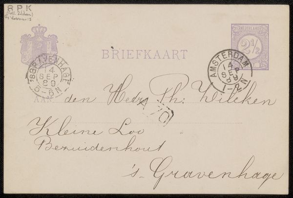 This 'Briefkaart aan Frans Buffa en Zonen' was sent by Mari ten Kate in 1882, a humble piece of paper transformed into a message carrier. It's a reminder that even everyday materials can hold significance. Look closely, and you'll see the imprint of the industrial age in its making. The mass-produced paper, the printed text, and the postage stamp are all products of new systems of distribution and communication. The handwriting is also key; it reveals the personal touch of the sender, carefully writing the address. Consider the social context: postcards like this facilitated commerce and connection within the booming art market. Frans Buffa en Zonen was an important art dealership in Amsterdam, so this postcard likely served a business purpose. It's a fascinating glimpse into the infrastructure that supported the art world in the late 19th century. This everyday object offers a window into the relationship between art, commerce, and communication, reminding us that even the simplest materials can carry rich cultural meaning.