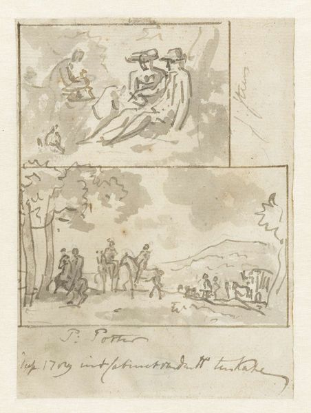 Curator: This is John Varley's "Studies of a Woman Washing, Children, Etc. Verso: Sketch" housed here at the Tate. It captures everyday life in miniature, doesn't it? Editor: Yes, the raw, unrefined quality really strikes me. The pencil work emphasizes the labor involved in these mundane tasks. Curator: Absolutely, this study offers a glimpse into the lives of working-class women and children in early 19th century Britain, likely intended as reference for larger, more polished works. Editor: It's interesting to see how Varley prioritizes process over finish, letting the materiality of the graphite speak to the immediacy of the subject. Almost feels like we are seeing people going about their daily lives! Curator: Agreed, and Varley was known for his work as a teacher so these sketches may have served a didactic purpose, as well as a means to capture the world around him. Editor: Thinking about this in relation to contemporary life, the drawing connects us to those often-unseen labors that underpin society. Curator: Indeed, it's a poignant reminder of the social fabric woven through these simple, repeated actions. Editor: Yes, a quiet revolution told through graphite.