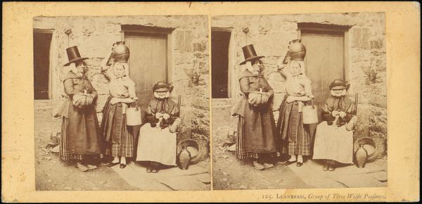 Curator: Alfred Stieglitz, the influential American photographer, likely captured this gelatin-silver print, "The Truant, Mittenwald," sometime between 1886 and 1896. Editor: My immediate impression is of subdued drama. The muted tones and composition focus my attention on the central figures. There's a tension visible in their postures. Curator: Absolutely. The photograph documents everyday life in a late 19th-century Bavarian village. Stieglitz, deeply embedded in the Pictorialist movement, championed photography as a fine art and frequently depicted working-class European life as a window into understanding global cultural dynamics. The "Truant" suggests themes of childhood, discipline, and societal expectations of the time. Editor: I see that play of light and shadow defining their forms. Look at the textures – the roughspun cloth of the woman’s dress, contrasted with the boy's more structured attire. Even the peeling plaster of the wall contributes. There’s a stark, almost melancholic quality achieved through the careful gradations of tone. Curator: Precisely. The location itself, Mittenwald, was a center for violin making. We might wonder if Stieglitz selected it intentionally. Note, the barrel on the bench suggests the everyday and rural surroundings. His work invited audiences to consider questions about social roles and expectations. Did he see the boy as a future artisan bound by destiny to the countryside? Editor: That is interesting, but visually the boy’s stance—the bare feet and the schoolbag cast aside—tell their own story through their position in the frame. Notice the slight blurring, especially around the edges and his leg? It softens the realism, inviting empathy. Curator: It’s that evocative element which garnered attention at a time when photography was trying to prove its artistic merit. The composition reinforces Stieglitz's belief in photography as more than mere documentation. It serves to critique and celebrate common folk. Editor: True. It transcends mere reportage through its nuanced attention to formal qualities and details of light, form and tonality. Stieglitz wasn’t simply recording; he was constructing a scene with palpable human presence. Curator: Reflecting on this image, one can’t help but appreciate how Stieglitz navigated the complexities of class and culture to create something genuinely moving. Editor: Indeed, he managed to blend realist observation with a kind of poignant aesthetic sensitivity. It makes for an artwork that invites layered, insightful interpretation.