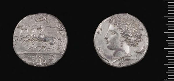Editor: This is a Tetradrachm of Philetairos of Pergamon, made by Philetairos. What strikes me is how these images, on something as common as currency, act as symbolic portraits. What do you see in this piece? Curator: It's fascinating how power embeds itself in imagery. This coin isn't just money; it's a declaration. Consider the seated figure – what does that posture, that shield, evoke for you? It speaks of authority, doesn't it? Editor: Yes, it does. The figure seems very regal. Curator: And the portrait, too, conveys specific qualities. It's not just a likeness. How does it communicate the identity of the ruler or the state? Editor: It's almost like propaganda in a miniature form. I never thought of coins this way. Curator: Exactly! Currency often becomes a vessel of cultural memory.