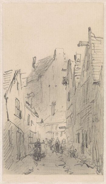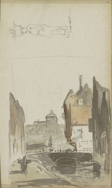 Editor: So, this drawing is titled "Oudezijds Kolk met de brug in de Zeedijk" by Cornelis Vreedenburgh, made sometime between 1890 and 1946, using ink on paper. It depicts a canal scene, and what strikes me is how… unassuming it is, like a quick sketch capturing a fleeting moment. What can you tell me about this piece? Curator: Well, I think that “unassuming” is key. Consider the historical context. During this period, there was increasing artistic interest in portraying everyday life, especially scenes of burgeoning urban environments. How do you think the growing industrialization might have affected how cityscapes were perceived and represented? Editor: That’s a good point. I suppose artists were reacting to rapid changes and maybe documenting the ‘old’ city before it disappeared entirely? Is this connected with social class in any way? Curator: Precisely! Artists like Vreedenburgh contributed to a visual record, democratizing the representation of the city beyond just the wealthy elite. By focusing on ordinary scenes, such as this canal and bridge, artists could reflect the changing social dynamics and make them accessible to a wider public through affordable drawings or prints. The medium here – ink on paper – also speaks to that accessibility. Editor: That’s interesting. I hadn’t considered the socio-political angle of simply *choosing* to depict an everyday scene. Now I see that this seemingly simple sketch actually tells a story about how art was evolving alongside societal shifts. Thanks! Curator: And I'm left pondering how "ordinary" scenes contribute significantly to the complex narrative of urban and cultural history, it is worth to always revisit those seemingly self-evident notions!