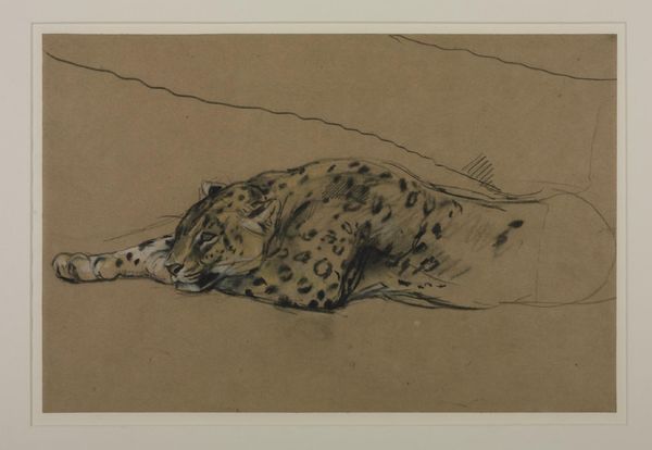 Editor: This etching, titled "Liggende panter," or "Lying Panther" by Bernard Willem Wierink, was created in 1906. The print captures the animal at rest and I find its quiet confidence particularly striking. What does this piece communicate to you? Curator: This print reflects early 20th-century European interest in representing exotic animals, particularly as seen through a Western lens. Consider the socio-political context; colonialism was at its peak, shaping how artists and the public understood these creatures. Is it simply a portrait of a wild animal, or something more? Editor: You mean like a symbol? I suppose the panther could represent the power of nature or the unknown, brought under control through the artistic process. Curator: Exactly. And it also reminds us of the social role of zoos and museums during that time. They weren't just places of scientific study but also arenas where colonial power was displayed and reinforced through the exhibition of animals and artifacts. Notice how the controlled lines of the etching, combined with its intimate scale, seem to domesticate this powerful animal. Editor: I see what you mean. The style does feel quite contained, almost like a specimen. It really reframes how I see images of animals from this period. Curator: Consider, also, how the Rijksmuseum acquired this print. Was it purchased directly from the artist, or did it enter the collection through a different avenue? These institutional details contribute to the art object's cultural history. Editor: That makes me think about how museums influence our perception. Thinking about where art comes from changes how we interpret it. Thanks! Curator: Indeed! Reflecting on art's journey within social institutions allows for a much richer experience and awareness of the values it embodies.
