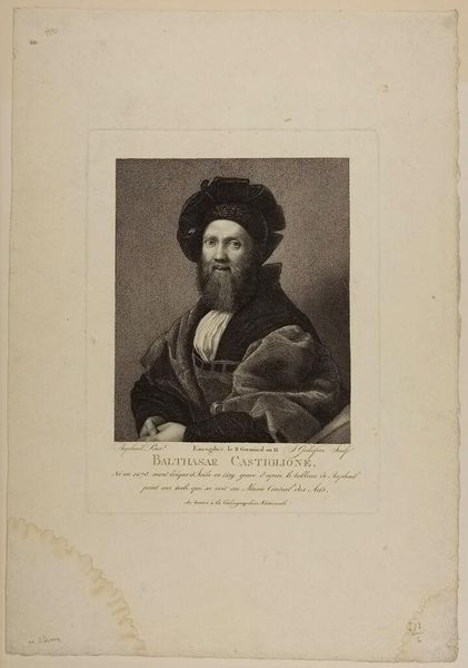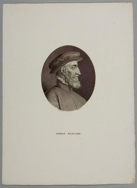 Editor: This is Augustin de Saint-Aubin's portrait of Michel de Montaigne. It feels very formal and imposing, what do you see in this piece? Curator: It's interesting to consider Saint-Aubin's portrayal of Montaigne, centuries after his death. How does the artist grapple with Montaigne's legacy as a skeptic and humanist, given the social and political upheaval of the 18th century? Editor: That's an interesting angle. So it's less about who Montaigne *was*, and more about how Saint-Aubin *interprets* him? Curator: Exactly! Consider how the portrait, framed by architectural motifs, almost enshrines him. What does that suggest about the Enlightenment's relationship to its intellectual predecessors? Editor: I hadn't thought about it that way. It's like he's being presented as a figure of authority. Curator: Precisely. And authority is always political, wouldn't you agree? Editor: Definitely, this was very insightful. Thanks!