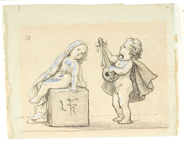 Harmen ter Borch made this drawing of two children in 1650 using graphite. It gives us a glimpse into the world of the Dutch Golden Age, a time of immense economic and cultural growth for the Netherlands. One child is seated, perhaps learning to sew, while the other plays the violin. The presence of music suggests a cultured, possibly affluent household, reflecting the rising middle class of the era. The Dutch Republic was unique in 17th-century Europe. Its society was characterized by religious tolerance, republicanism, and a thriving market economy. Art played a central role in shaping national identity and projecting values of civic virtue, domesticity, and prosperity. Ter Borch's drawing reflects these values, portraying children engaged in activities that promote discipline, skill, and refinement. To truly understand this work, we need to delve into the social and economic history of the Dutch Golden Age, examining sources like period documents, and studies of Dutch art. Doing so helps to understand the society that shaped its creation.