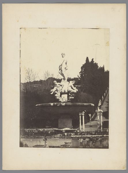 Editor: Here we have "Cascade at the Chateau de St. Cloud" by Louis-Rémy Robert, dating back to around 1854. It’s a daguerreotype, which gives it this sort of hazy, ethereal quality. The cascading water feels so still, almost frozen in time. What do you see when you look at it? Curator: Ah, yes, stillness within movement! I see a memory clinging to the silver plate. Can you feel the whisper of the Chateau de St. Cloud before its tragic destruction? It’s more than just water and stone, isn't it? It’s a captured breath. The daguerreotype, it’s a dance between realism and romanticism, like trying to hold a dream in your hand. Editor: Absolutely. That stillness gives it a mournful air, knowing the Chateau was destroyed later. But even with the destruction, I am wondering about the technical skill of capturing the water movement in such detail, even if it looks frozen in time. Was that common at that time? Curator: Precisely! Early photography was like alchemy – a delicate balance of light, chemicals, and a touch of serendipity. The fact that Robert managed to capture the cascade with this much clarity, in a time when exposure times were still quite lengthy, is really a testament to his technical mastery, but I also sense in this daguerreotype that there's the tension between capturing the "real" and constructing an image for memory. Almost makes you wonder if all our photos today are real, too, doesn't it? Editor: It does. This makes you consider how a still image, especially from so long ago, carries a sense of longing for a moment already lost. It’s so beautiful and fragile at the same time. Thanks for illuminating it for me! Curator: My pleasure. Every image is a time capsule, and sometimes the most powerful stories are found in those very hushed echoes.