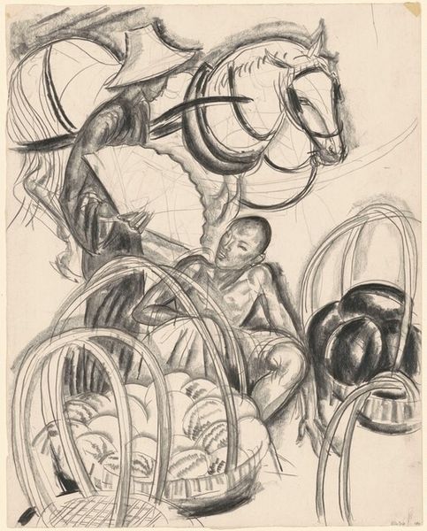 Curator: Right, let's discuss "Morning," a circa 1939 etching by Joseph Leboit. It depicts two fowl, rendered in striking detail. What are your immediate impressions? Editor: Unease. It's not the pastoral dawn one might expect. The stark black lines create a sense of agitation, almost violence. You can feel the grit of the printing process itself. Curator: Indeed. Roosters often symbolize vigilance and courage, announcing the dawn. But here, that symbolism seems inverted, the scene less about a peaceful awakening and more about…confrontation? Editor: Look at the lines! Leboit uses incredibly dense hatching to create depth, especially in the tail feathers. You see the physical labor involved; that deliberate, repeated action biting into the plate. What kind of labor was Leboit doing? Was he under the Federal Art Project, carving out a new role for the artist? Curator: Good questions. During the Depression, artists wrestled with portraying reality and social change. These birds, then, can be more than farm animals. They're ciphers, vessels containing an unsettled quality; perhaps embodying social unrest, the precariousness of life during economic hardship. The imagery reflects anxieties permeating society. Editor: Or maybe Leboit simply used what was on hand – fowl from the barnyard! It still makes one wonder, though, how access to materials influenced the work during that era. Cheaper papers? Readily available inks? These constraints would affect artists deeply. Curator: Of course, those conditions shaped his work. But consider also the tradition Leboit engages with – the bestiary. Animals as stand-ins for human traits, for social critique…he draws upon that deep well. Editor: Alright, the symbolic interpretation certainly lends a darker resonance, knowing how these images persist culturally. Curator: Ultimately, this etching achieves a compelling tension, making one rethink such a conventional and hopeful motif: morning. Editor: Exactly. The texture and materials alone complicate any straightforward reading, disrupting simplistic narratives about the artwork itself.