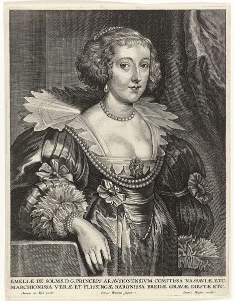 This is a portrait of Wilhelmina van Pruisen by Franz Krüger, made using a printmaking technique. Look closely, and you'll see the fine lines and stippling that give the image its form and tone. This print wasn't created with a single stroke of a brush like a painting. Instead, it’s the result of skilled labor. The artist, or perhaps a team of artisans, would have meticulously etched an image onto a metal plate, probably copper or steel, and then used that plate to create multiple impressions. The choice of printmaking democratizes the image. Unlike a unique painting accessible only to the wealthy, prints could be distributed more widely, making Wilhelmina's image available to a broader audience. This connects with larger social themes of the time, of class, labor, and the reach of power through visual representation. The print is not just an image, but also a product of labor, reflecting the changing landscape of art production and consumption.