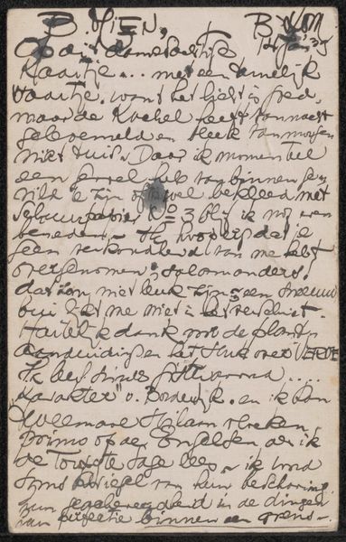 Willem de Zwart wrote this letter to Philip Zilcken on a piece of paper; its date is currently unknown. Born in the Netherlands in 1862, De Zwart came of age during a period of rapid social and political change. The Dutch art world was experiencing its own transformation as artists grappled with questions of national identity and the role of art in a rapidly modernizing society. De Zwart's letter offers a glimpse into the social networks that sustained artistic production during this period. The note reveals the behind-the-scenes negotiations and exchanges of support that were essential to artists trying to establish themselves in a competitive art market. The letter is damaged, stained, and torn, which evokes feelings of vulnerability and resilience. It serves as a reminder of the human connections that underpin artistic creation.