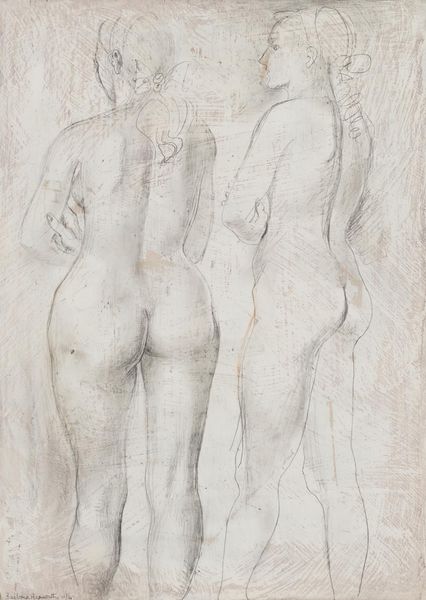 Marc Chagall created this work on paper, titled "Verve #4," using lithography and pochoir. Immediately striking is the composition, where figures and forms meld into a dreamlike tableau rendered in soft, muted tones. The figures of Adam and Eve are intertwined with floral motifs and the serpentine form of the serpent. Chagall's color choices, like the blues and greens of Adam’s skin, disrupt naturalistic representation. Instead, they invite us to consider a symbolic register, where color evokes emotional and spiritual states. The lithographic process allows for layered textures and a depth of tone, which are further enhanced by the hand-applied pochoir. These techniques add a tactile quality to the image, enriching our sensory experience of the artwork and highlighting the act of creation itself. This aesthetic of layering disrupts a singular reading, as it challenges our perception and deepens the complexity of meaning within the artwork.