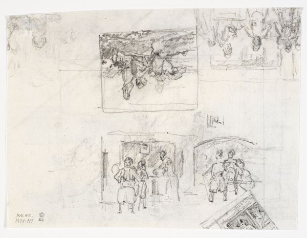Editor: So, this is "Fama og andegård," or "Fame and the Duck Yard," a pencil drawing by Wilhelm Marstrand, made between 1867 and 1869. It feels almost like a study, with the winged figure and then the… well, the duck yard. What exactly am I looking at here? Curator: From a materialist perspective, the combination is fascinating. We have the figure of Fame, often associated with grand historical narratives, rendered here in the same medium and with the same level of detail as a group of domestic fowl. It's almost as if Marstrand is collapsing the traditional hierarchy between high art and everyday life. Editor: I see. So, the angel is no more important than the ducks because of the equal consideration given to each... But what was he trying to say with this contrast? Curator: Think about Marstrand’s audience and the social context. He’s working at a time when industrialization is rapidly changing Denmark. Perhaps this juxtaposition is a comment on the shifting values, the blurring lines between the elevated and the mundane in a society increasingly focused on production and material wealth. The ‘means of production’ here becomes literally…poultry farming? Editor: So Fame isn't some romantic ideal, but a resource in a farm? That idea is jarring! How radically subversive was that at the time? Curator: We have to remember that artistic materials also had monetary values then, and labor costs were involved. The artist had to choose how and on what to spend them. The decision to portray something so mundane indicates deliberate intent, or at the very least, is revealing about how he considered his subjects, no? Editor: It definitely flips my understanding of that kind of figurative representation. Thanks for the perspective; it has made me re-evaluate drawing in general. Curator: Precisely! Now consider how this lens applies to other works as well; what labour went into their artmaking, and to what societal needs or narratives are they contributing.