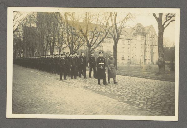 This photograph by Sémaphore depicts German prisoners of war in an English village after the battle of Neuve-Chapelle in March 1915. It reflects the First World War's reshaping of social and political landscapes, where notions of national identity were heightened, and propaganda played a crucial role in shaping public sentiment. The image captures a sense of both victory and dehumanization. The long line of prisoners, guarded by British soldiers, underscores the power dynamics at play. Are the prisoners in fact 'fortunate to be out of danger' as the title suggests, or does this belies a more complex emotional reality? The photograph invites us to consider the dehumanizing aspects of war, experienced on both sides, as well as question the narratives of heroism and victory.
