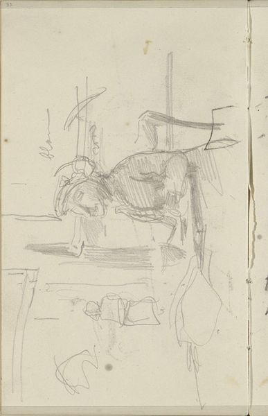 George Hendrik Breitner created this drawing of ‘Twee paarden’ with chalk on paper. The swift, assured lines capture two horses in what appears to be a moment of quiet repose. Breitner's use of line is particularly striking. It's not about capturing every detail, but rather, the essence of form. The horses are built from a framework of bold, dark lines, with lighter, fainter strokes suggesting depth and volume. The effect is a dynamic tension between what is present and what is implied. This drawing exists not as a finished piece, but as a study, capturing the artist's thought process. Incomplete forms and shadowy lines prompt questions about representation and the artist's subjective experience. The semiotic effect prompts us to fill in the gaps, so to speak. The drawing, therefore, becomes not just an image of horses, but an exploration of how we perceive form and space through the language of drawing.