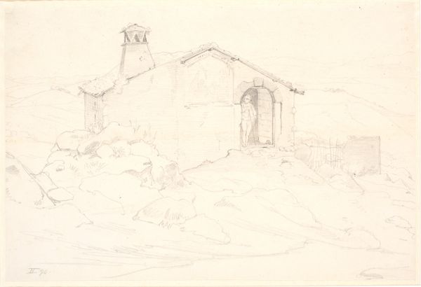 Editor: Here we have Martinus Rørbye's "Street in Grotta Minarda in Abruzzo," a pencil drawing from 1835. There’s something very immediate about this cityscape, captured in such delicate lines. It really brings to the fore the materiality of architecture and human existence. What strikes you most about this work? Curator: Immediately, I'm drawn to the marks – the evident labor in the etching. The pencil wasn't just rendering an image, but documenting the way materials intersect. Note how the stones are depicted versus the wooden balcony. Each material possesses different production demands, with implications about access, wealth, and the way Rørbye constructs the social relations here. Does the rendering elevate one building material over another, and if so, how? Editor: I see what you mean. The detail in the stone stairs is far greater than that of the wood. I hadn’t really thought about the "labor" that went into the pencil marks themselves, or how they’re a way of categorizing different kinds of manual creation. The labor is almost invisibly present here. Curator: Exactly! Look, too, at how Rørbye chooses to depict human figures within the cityscape. These small details become integral to how the city is materially constructed – we are the stones, the pencil itself and its impressions on the page! Do you get a sense of a narrative through the use of pencil, an economic history that the artist captures? Editor: I do, it makes you consider buildings themselves as products of labour. And the level of detail is revealing... it feels like a visual commentary on that labour and its social strata. It emphasizes the means of making art as a dialogue between material and maker. Curator: Precisely! And the social implications that resonate beyond. I wonder what new understanding about this picture we may bring at our next visit!