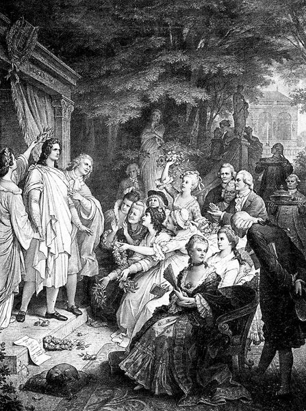 Eugène Delacroix created this lithograph, entitled "Faust meeting Marguerite," during the Romantic era, a time when artists turned to intense emotional experiences and the power of the individual. Delacroix was captivated by Goethe's play "Faust," particularly the tragic romance between Faust and Marguerite. In this print, we see the moment of their fateful encounter. Faust, a scholar who sells his soul to the devil, represents unchecked ambition and the pursuit of knowledge at any cost. Marguerite, on the other hand, embodies innocence and vulnerability. Their interaction raises questions about power dynamics, seduction, and the consequences of choices, particularly for women in a patriarchal society. The image also reflects Delacroix's interest in exploring the darker aspects of human nature. The presence of Mephistopheles, the devil, highlights the moral and spiritual conflicts at the heart of the story. The print resonates even today, prompting us to think about the dangers of unchecked ambition and the enduring power of love and sacrifice.