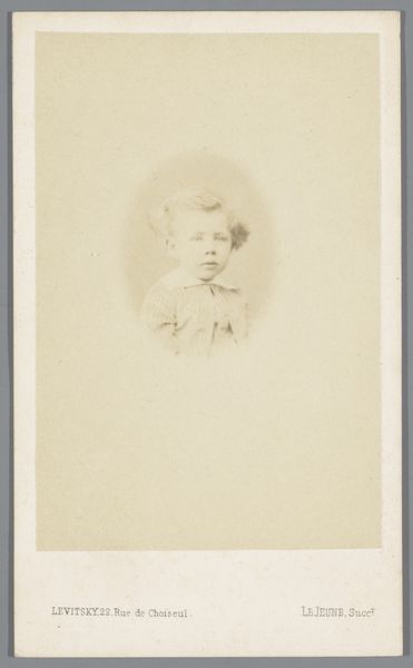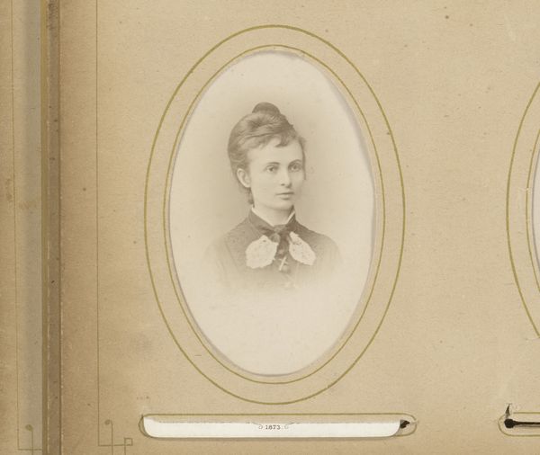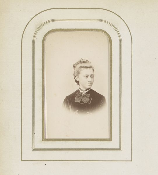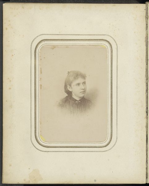Editor: So here we have “Portret van een Vrouw,” or “Portrait of a Woman” by Ch. Brandebourg fils, a photograph taken sometime between 1860 and 1890. It's so delicate, almost ghostly. What captures your attention when you look at it? Curator: Well, first, that soft focus is everything, isn’t it? It's as if she’s emerging from a dream, a hazy memory brought to life. Back then, photography was less about sharp realism and more about capturing an essence, an ideal. Tell me, what does her gaze tell you? Editor: She seems very proper. There's almost a stoicism, though softened by the way the light catches her face. Curator: Exactly! This wasn’t just about recording a likeness. Think about it – sitting for a portrait was still quite a formal affair. Each element of her appearance, from her hair to her dress, speaks volumes about her status, her aspirations, even her inner life, which, of course, are really just beautifully constructed fictions. Don't you think? Editor: Constructed fictions? That's interesting, since photographs are often seen as capturing reality. Curator: Oh, but reality is such a fluid concept! This photographer is carefully curating an image, using light, pose, and even that dreamy focus to create a particular impression. I almost want to know *her* secrets as much as this woman's. It is beautiful, isn't it? Editor: Definitely something to ponder, looking beyond what seems real in an image. Thank you. Curator: My pleasure. It's always about discovering new layers, new stories hidden in plain sight.