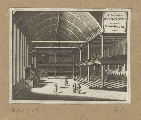 Editor: This etching, "Interior of the Bodleian Library in Oxford," made between 1673 and 1692 by Michael Burghers, gives me a sense of vastness. What story does this image tell you? Curator: It offers a glimpse into the world of intellectual elites and the politics of knowledge. Consider the patrons and audiences who would have viewed this print. What purpose did it serve? Editor: It feels like a visual record, a status symbol perhaps? To showcase the importance of the library and, by extension, the university? Curator: Exactly. And more broadly, think about the emerging public role of institutions like the Bodleian Library. These weren’t just spaces for private study, but increasingly symbolic of national prestige and enlightenment ideals. Notice how Burghers carefully constructs a sense of order and access to knowledge. It invites a specific kind of visitor and perhaps, subtly excludes others. How might different social classes or even different academic disciplines interpret this image? Editor: So it's not just a neutral depiction of a library, but also a statement about power, knowledge, and who has access to it. That is a powerful idea. Curator: Precisely. Prints like these were often commissioned to project an image of learned authority and attract benefactors. Understanding the social context enriches our view of it. What was intended by the artist and those who commissioned the work is the main focus of this artwork. Editor: That’s fascinating! I didn’t initially consider all those layers. Thanks for offering this historical perspective! Curator: My pleasure! It’s crucial to remember art as a product of its time. Now I will view library scenes much more critically.