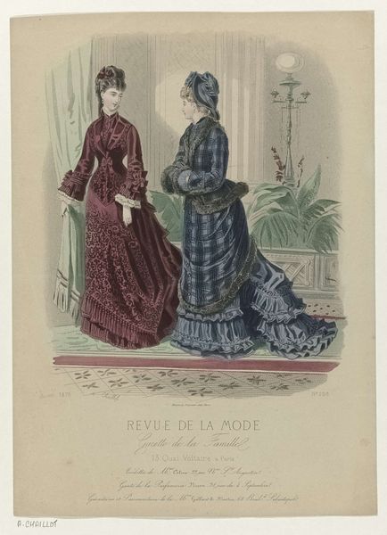 This fashion plate by E. Cheffer, titled ‘Revue de la Mode,’ was created for a French family gazette in November 1880. The magazine reflects the aspirations of the rising bourgeoisie in late 19th-century France, where fashion became a marker of status and identity. These aren't just dresses; they represent a whole set of social values and expectations for women. Notice the corseted silhouettes, which enforce a certain posture and control over the female body, reflecting the era's emphasis on women's roles as decorative objects. The women are presented in the trappings of artistry and refinement: with easels and canvases nearby, suggesting cultivation and leisure. This image doesn't just present fashion; it subtly reinforces the social norms and gender roles of the time, inviting us to reflect on the complex interplay between clothing, identity, and societal expectations. It encourages us to consider how fashion can both reflect and shape our understanding of ourselves and others.