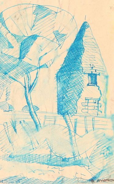 Curator: This is Pavel Filonov's "Houses," created around 1925. The work employs graphite on paper and shows a group of tightly packed architectural forms. Editor: Immediately, I notice a kind of naive yet unsettling feel. The lines are deliberately crude, almost as if rendered by a child, but the overall composition hints at something more complex and, perhaps, even menacing about these abodes. Curator: I find that interesting. From a materialist standpoint, the starkness in technique and the limited materials speak to the economic realities of the time. This wasn't about luxurious artistic expression; it was about communicating essential visual information, perhaps critiquing living conditions through what's included, and what's decidedly left out of these 'Houses' Editor: Yes, but consider how the houses are depicted almost as primal symbols of shelter and confinement. Filonov plays with our innate understanding of "home" – a place of comfort and belonging – by rendering these spaces in such an unnerving way. Each crude shape becomes almost like an icon of displacement. I’d say the houses even slightly resemble coffins… Curator: The fact that it is rendered in graphite and seemingly hastily applied suggests the precarity of shelter. In an avant-garde milieu that oscillated from embracing industrial progress to lamenting its alienating impact, could this choice of medium signify that homes were increasingly unstable commodities in a rapidly urbanizing and socio-politically unstable world? And perhaps it can be read alongside, and in tension with, the utopian ideals also circulating in constructivist practices? Editor: Precisely, because these are not idyllic houses but rather archetypes loaded with anxiety. See the recurring square motifs acting as doorways and windows, perhaps each representing individual stories, trapped destinies within those geometric cages. Their very simplicity evokes a sense of impending doom. The "Houses" become emblematic not of warmth but a cold, desolate uniformity. Curator: Such a reading allows us to interpret these crude geometric lines as standing in for, but also challenging, formal modernist aesthetics. But if they lack warmth, does it critique the abstraction away from real lives and lived experience of making architecture at that moment? Is Filonov implying it to be out of reach to the common person at the time, rather a signifier for power and status, only a false sign for home or dwelling. Editor: It gives us pause for reflection, as architectural forms. It certainly does for me. Curator: I agree, and for me, seeing these materials now allows a better look at the complex social implications of these "houses".