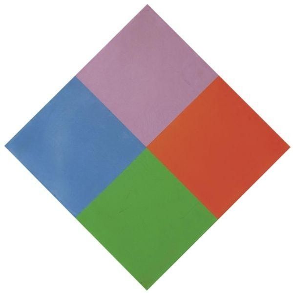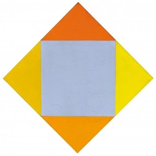 Editor: Here we have Max Bill’s "Auflösung von lila," or "Dissolution of Purple," created in 1972 with acrylic paint. It's geometric, simple, and quite calming with the various shades of blue and purple. What's your perspective on it? Curator: Calming, yes, but with an underlying tension. The colour fields meet so precisely, those razor-sharp edges, hinting at some underlying structure or pattern we can’t quite grasp. It's hard-edge painting, as you can see. Notice how it plays with your perception – does the purple dissolve, or intensify? Does it hold its shape? Editor: I see what you mean about the tension. It almost feels like something is about to shift or move, even though it's just a static image. What do you think Max Bill was trying to express with this? Curator: Bill was deeply invested in concrete art, searching for universal and objective beauty through pure geometric forms. He believed art could be a form of intellectual exploration. I feel like there's a bit of soul in this image too, a silent melody created only with squares. Do you feel that too, or am I going crazy? Editor: I get that. It's interesting how something so geometric can still evoke an emotional response. Like the purple is slowly giving way. It certainly gives the impression of progression despite being static. Curator: Exactly! I believe you also begin to get some intuition when you try your hand at hard-edge-painting. If you enjoy precision, the movement will speak to you. Editor: Well, now I definitely have a whole new appreciation for Max Bill. It is so easy to dismiss this work without considering its objective in art and exploration. Thanks for helping me see past the surface! Curator: My pleasure. Sometimes art sneaks into us when we least expect it. Now, off to the next revelation!