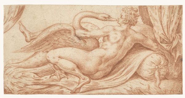 Editor: So this is "Study for ‘The Eclipse of the Sun by the Moon’" from 1892, by Elihu Vedder, made with charcoal. It has this really ethereal quality...almost ghostly because of the limited palette. How do you interpret this work? Curator: What strikes me immediately is the visible labor involved in its production. Notice the density of the charcoal strokes, and how they build up form and shadow. Consider the artist's physical effort – the repetitive, almost meditative act of layering charcoal to create this image. Editor: Right, it's not a quick sketch. What about the book and the figure, though? Are they supposed to be symbolic of something larger? Curator: The Symbolist movement often utilized allegorical figures, yes. But I am drawn to the materiality of the work. The charcoal itself transforms base material into an ethereal being writing in a book. Is Vedder commenting on the labor involved in constructing meaning and knowledge itself? Is this a proto-feminist commentary by the male artist? The artist himself might be the moon, or some equivalent metaphor about labour? Editor: So you're suggesting the work might be more about the act of creation itself than just some pre-determined symbolic message? Curator: Precisely. How does Vedder use charcoal, a common material, to transcend the limitations of its earthly origin and convey celestial themes? He is imbuing materiality with symbolic meaning by way of repetitive labor. Editor: That gives me a whole new perspective. I was focused on deciphering the symbolism but seeing the charcoal as the primary point…it changes everything! Curator: Think about what kind of hand it took to put down these strokes, to make all those little choices in the arrangement of forms, and the building of layers of meaning through labour. Editor: Thanks! Now I’ll see it in terms of materiality and social history, not just art history.