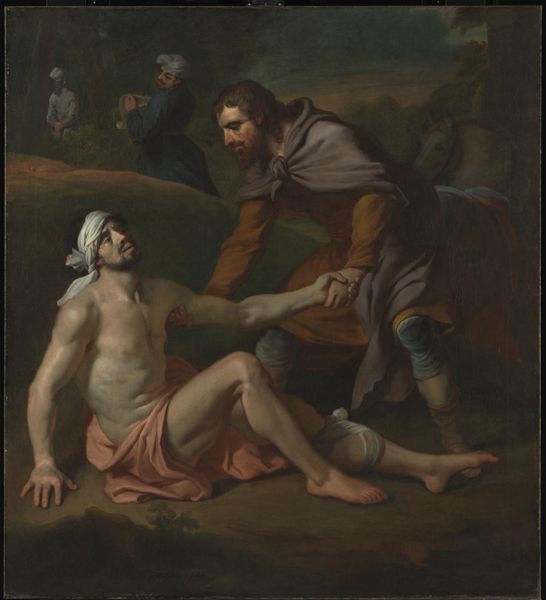 Jan Lievens created this rendition of "Samson and Delilah," likely sometime in the 17th century, using oil on canvas. The painting depicts a biblical scene loaded with themes of betrayal, power, and gender dynamics. Here, we see Samson asleep, his head resting on Delilah's lap. Her expression seems to be a mix of alarm and satisfaction as she looks to a man holding shears. This moment signifies not just the cutting of Samson’s hair, his source of strength, but also the broader theme of male vulnerability at the hands of female deception. Lievens was working within a cultural context where women were often portrayed as either virtuous or deceitful. This representation of Delilah is a reflection of those misogynistic stereotypes. The painting’s emotional core lies in Samson’s vulnerability, a powerful man reduced to helplessness, challenging traditional notions of masculinity. How does this betrayal resonate with contemporary understandings of power and vulnerability?