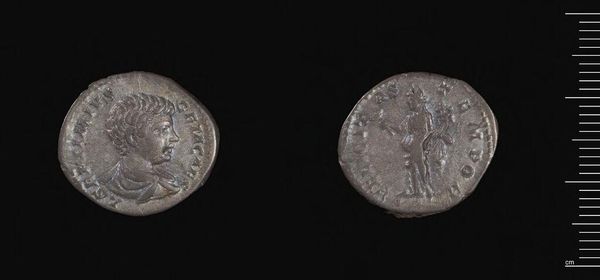 Curator: Before us is a silver denarius, minted during the reign of Septimius Severus. Editor: It's strikingly small, but the etched details manage to convey strength and even an aloofness of character. Curator: Indeed. The material reality of this coin speaks volumes about Roman imperial power. The silver would have been mined, refined, and then struck – processes involving considerable labor. And these coins facilitated commerce, military payments, and imperial propaganda. Editor: The composition is quite classical. A bust in profile, meticulously rendered, set against a circular field. It's a study in restrained elegance. Curator: These weren't just pretty objects, though. Each coin represents the extension of Roman power through the manipulation of materials and labor. Editor: I see your point, but there’s a beauty in its formal simplicity too. Curator: Absolutely, and seeing the intersection of the two enriches our understanding. Editor: Agreed. This piece offers a reminder of both the artistic skill and the economic foundations of the Roman Empire.