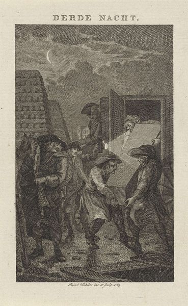 Reinier Vinkeles created this engraving, Cornelius Musius opgehangen te Leiden, 1572, using a metal plate, tools to cut lines into it, and ink to transfer the image onto paper. The stark contrast between light and shadow gives this print its dramatic impact. Consider how the process of engraving itself—the careful, precise carving into the metal—lends itself to such sharp definition. Vinkeles uses line and hatching to create tone and texture, bringing depth and emotion to the scene. But the material reality of this print also speaks to a wider social context. Engravings like this were relatively reproducible, and made it possible to disseminate political messages widely during the 18th century. Here, the act of memorializing a historical event through print becomes a form of social commentary. The labor of the artist, the skilled techniques employed, and the very materials used, all converge to give this artwork its enduring significance.