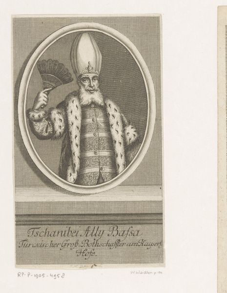Curator: Here we have a print from 1660, a portrait of Nicolas de Saint-Saturnin created by Etienne Picart. The texture is incredible given it's an engraving. What do you think at first glance? Editor: It feels rather austere, almost solemn. The man's posture, with hands clasped, along with the stark contrast of the engraving, give it a sense of gravity. It almost feels like a still from some long-forgotten historical drama. Curator: The composition employs a classic oval frame, common in Baroque portraiture, which emphasizes the figure's head and shoulders. The detailing in the clothing is fascinating given the age of this print and really showcases Picart's craftsmanship. Editor: Yes, that meticulous line work conveys the texture of the robes and headdress surprisingly well, even though the color palette is, by necessity, monochrome. You get a real sense of the man's status through his attire. The artist manages to imbue him with a kind of pious dignity, don't you think? Curator: The lines certainly dictate the feeling! Formally, the direction of the lines guide our eyes to follow his gaze which really focuses the viewer to interpret that piousness, as you so intuitively noted. Editor: His slightly downturned eyes suggest a quiet humility, or perhaps pensiveness? I'm also intrigued by the visible age in his face etched there by the engraver’s tools. I find myself wondering about his thoughts and struggles as much as his achievements and status. Curator: Indeed. It's a testament to Picart’s skill that he manages to convey so much psychological depth through a medium like engraving. The interplay of light and shadow enhances that, giving him both a solid presence and an almost ethereal quality. Editor: Looking closer, the craftsmanship is just stunning. The level of detail achieved through what must have been meticulous work with engraving tools just blows my mind. The texture is so palpable. Curator: Absolutely, an excellent way to round it off: "Portret van Nicolas de Saint-Saturnin" offers not just a glimpse into the past, but also a study in formal beauty. Editor: I came in ready to judge, but the execution really adds the humanity that moves it past mere technical exercise.