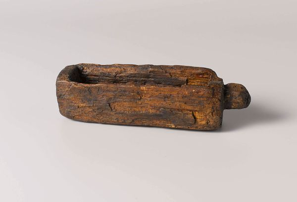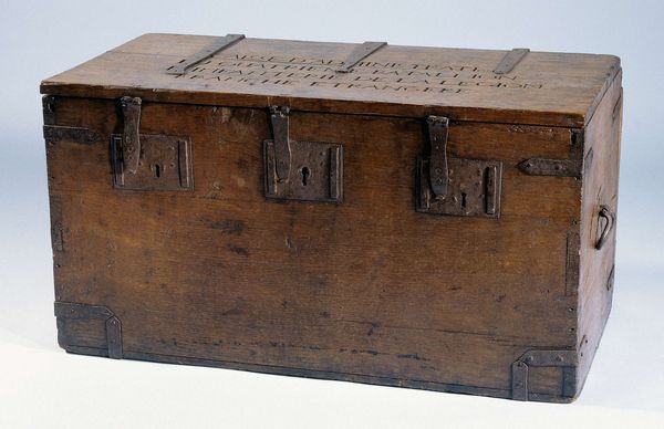 Editor: This is "Foedraal behorend bij steek," or "Case belonging to a bicorne" from sometime between 1906 and 1930. It's an anonymous assemblage of metal. It gives a really somber and practical impression, but I am curious about the historical context and how it might relate to the bicorne it held. What strikes you most about this object? Curator: Well, seeing a mundane object elevated to museum status always prompts questions about what it represents beyond its immediate function. This metal case, intended to protect a bicorne, speaks volumes about the socio-political landscape of its time. A bicorne hat itself was a symbol of authority, primarily worn by military and diplomatic figures. Editor: So, by extension, protecting the hat meant protecting the authority? Curator: Exactly! The preservation of such an item underscores the emphasis on maintaining established hierarchies and power structures during that period. Moreover, the survival of such an object is dependent on socioeconomic circumstances and institutional collection practices, as most of this period disappears with daily use and obsolescence. I am interested in how it made its way to a museum collection. It raises several interesting avenues for exploration. Have you considered how even seemingly insignificant objects reflect larger cultural narratives? Editor: Not really, until now. I just saw a dirty box. Now, thinking about what it protects makes me consider not just the wearer but the culture. Curator: Precisely! Objects like these serve as tangible links to the past. They become silent witnesses to evolving social norms and shifting power dynamics. And in turn influence those who collect and observe these remnants of that world. Editor: It’s really amazing to think of a simple box carrying so much history within it! I see it differently already.