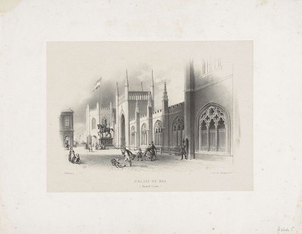 Jean-Baptiste Arnout made this print of the Opéra Le Peletier in Paris using lithography, a technique developed around 1800 that democratized printmaking. Unlike earlier methods that required painstaking engraving or etching, lithography allowed artists to draw directly onto a stone or metal plate with a greasy crayon. The surface would then be treated chemically so that ink only adhered to the drawn areas, allowing for relatively quick and easy reproduction. The soft, grainy texture evident in this print is a direct result of the lithographic process, lending a subtle atmosphere to the scene. It’s fascinating to consider how this new technology allowed for wider distribution of images, fueling the growth of visual culture and, in a way, early mass media. So, next time you see a print, remember to look closely at its materiality and how the artist's chosen process shapes our perception. It challenges our understanding of art as singular, precious objects, and invites us to consider the social and economic forces that shape their production and consumption.