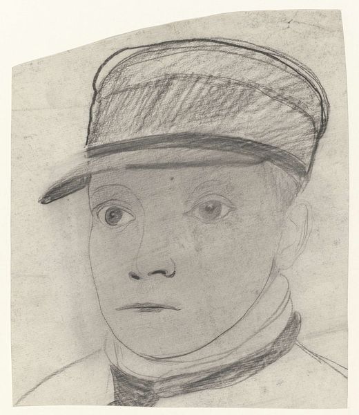Vincent van Gogh likely made this drawing, Head of a Young Man, with graphite pencil on paper. The marks are quick and searching, capturing the likeness of a young man in a cap. The density of graphite creates areas of shadow, particularly around the face and hat, giving the image depth. It looks like Van Gogh applied variable pressure and experimented with hatching techniques, using closely spaced parallel lines to build up tonal variations. Given the urgency of the marks, the drawing may have been made outdoors, capturing a fleeting moment. The relatively simple materials – pencil and paper – underscore the importance of direct observation and the artist's skill in translating what he sees into a compelling image. The choice of humble materials reflects Van Gogh's own social consciousness and his affinity for the working class, and it also tells us something about the value he placed on process, rather than refinement.