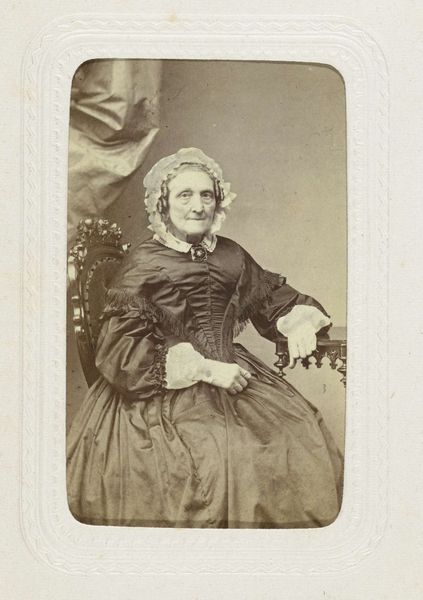I.H. Hoffmeister created this studio portrait of an older woman in a long, dark dress using an early photographic process. The woman’s dress and bonnet speak to a specific cultural context, reflecting the sartorial norms and social expectations of women of a certain age and class during the 19th century. Portraits like this offer a window into the lives of women whose voices are often marginalized in historical narratives. This image is interesting in how it presents both a traditional and an individual identity. While the subject adheres to the era's conventions of dress and posture, there's also a sense of her distinct personality. We can feel the subject’s presence and imagine her experiences. In its own way, this photograph serves as a form of preservation, not just of an image, but of a life lived. It reminds us of the importance of acknowledging and valuing the experiences of all individuals, ensuring their stories are not forgotten.