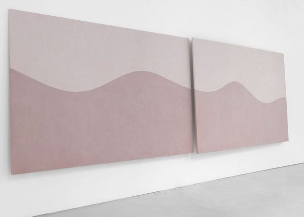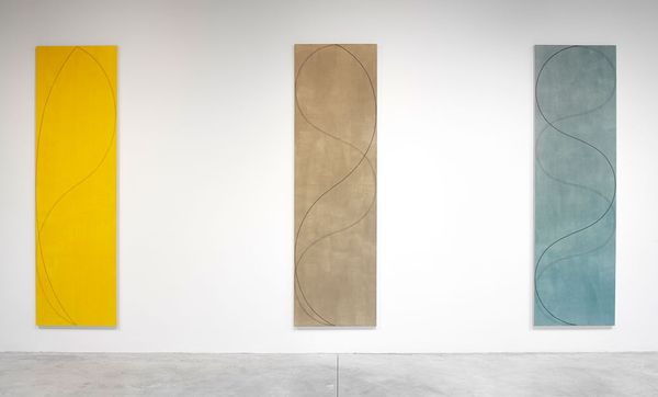 Robert Mangold made this large wall-mounted artwork, 1/2 Manilla Curved Area, with acrylic and pencil on canvas. These are traditional art materials, but their combination with such elemental geometry leads to something completely new. The canvas surface is seamless, its gently curved lower edge creating a sense of wholeness, but the pencil lines interrupt this, dividing the composition into quadrants, and then bisecting the central two with a triangular form. The acrylic provides an even, neutral ground, allowing the graphite lines to come forward. The canvas is stretched taughtly, underscoring the artwork's emphasis on surface tension. The labor involved in the production process is evident in the careful application of the paint, and the crispness of the lines. Ultimately, this work challenges traditional distinctions between fine art and craft, inviting us to consider the social context, the materials, and the making, as crucial to fully understand its meaning.